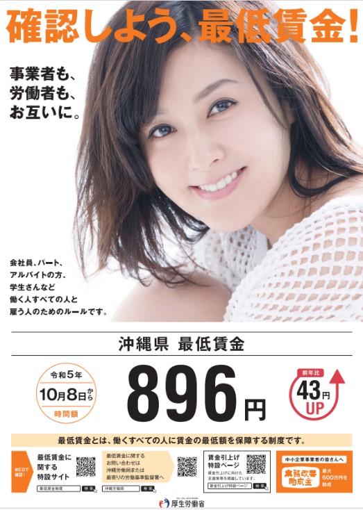 2023.11.21※令和5年10月8日より沖縄県最低賃金が『896円』に改定されました。